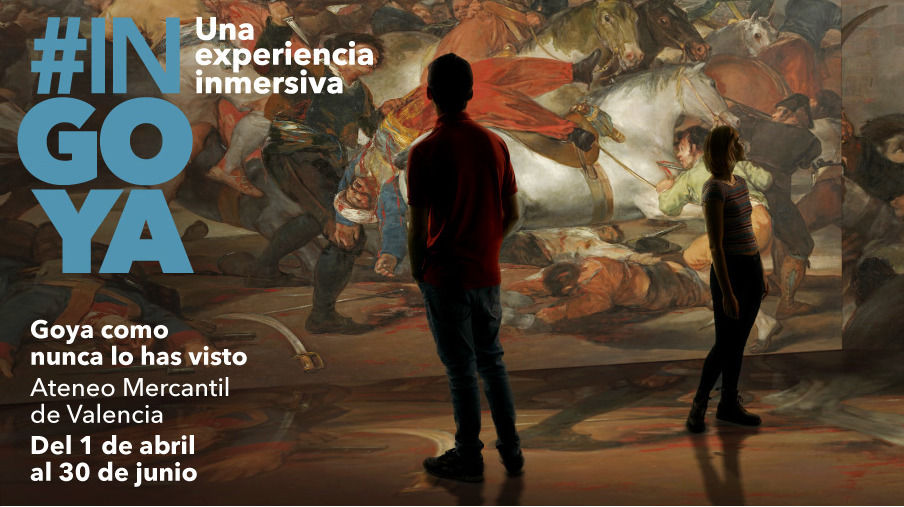 L’Ateneu Mercantil de València acull des de l’1 d’abril una experiència immersiva al voltant de l’obra de Francisco de Goya. Amb una producció cuidada al detall i utilitzant tecnologies punteres, #INGOYA ofereix al visitant una experiència audiovisual immersiva per a gaudir de l’obra del mestre aragonès d’una manera única.