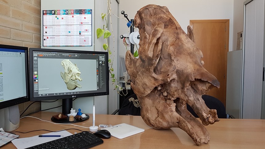 Una col·laboració entre el Departament de Projectes d’Enginyeria de la Universitat Politècnica de València i el Museu de Ciències Naturals de València ha permés la reproducció dels cranis de diversos exemplars de la col·lecció. Este projecte s’ha dut a terme a través de l’escaneig tridimensional de cadascun dels cranis, per a obtindre un model digital, i la posterior impressió 3D dels propis.