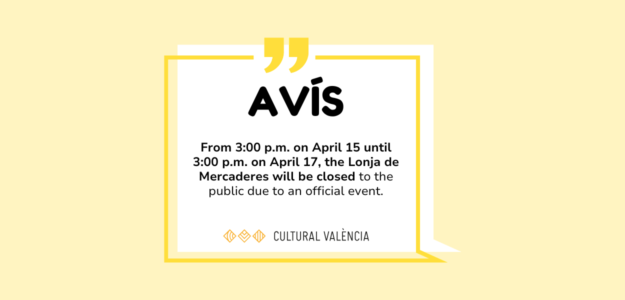 From 3:00 p.m. on April 15 until 3:00 p.m. on April 17, the Lonja de Mercaderes will be closed to the public …