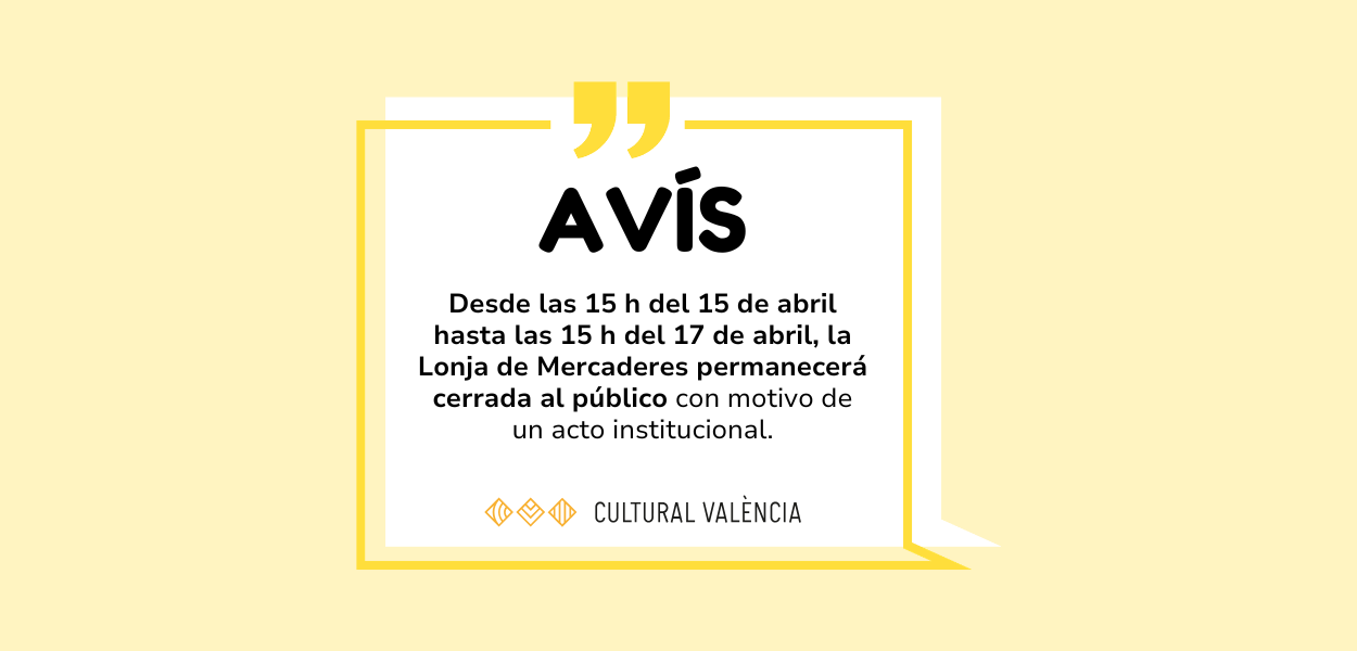 Desde las 15 h del 15 de abril hasta las 15 h del 17 de abril, la Lonja de Mercaderes permanecerá cerrada al público …