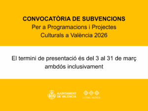 Castellà: https://sede.valencia.es/sede/registro/procedimiento/CU.AY.67?lang=1 Valencià: https://sede.valencia.es/sede/registro/procedimiento/CU.AY.67?lang=2 Esta convocatòria té com a objectiu atorgar subvencions en concurrència competitiva, gestionad